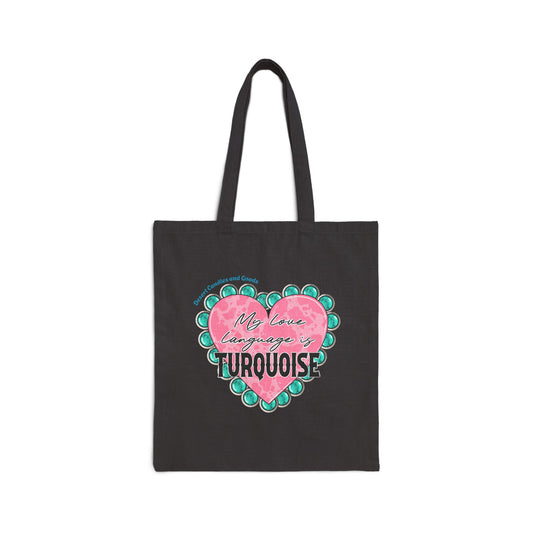 Canvas Tote Bag — Heart Design “My Love Language: Turquoise” Eco Market Tote