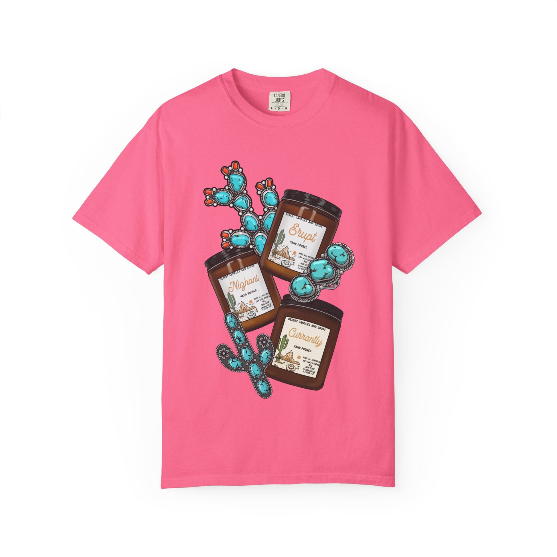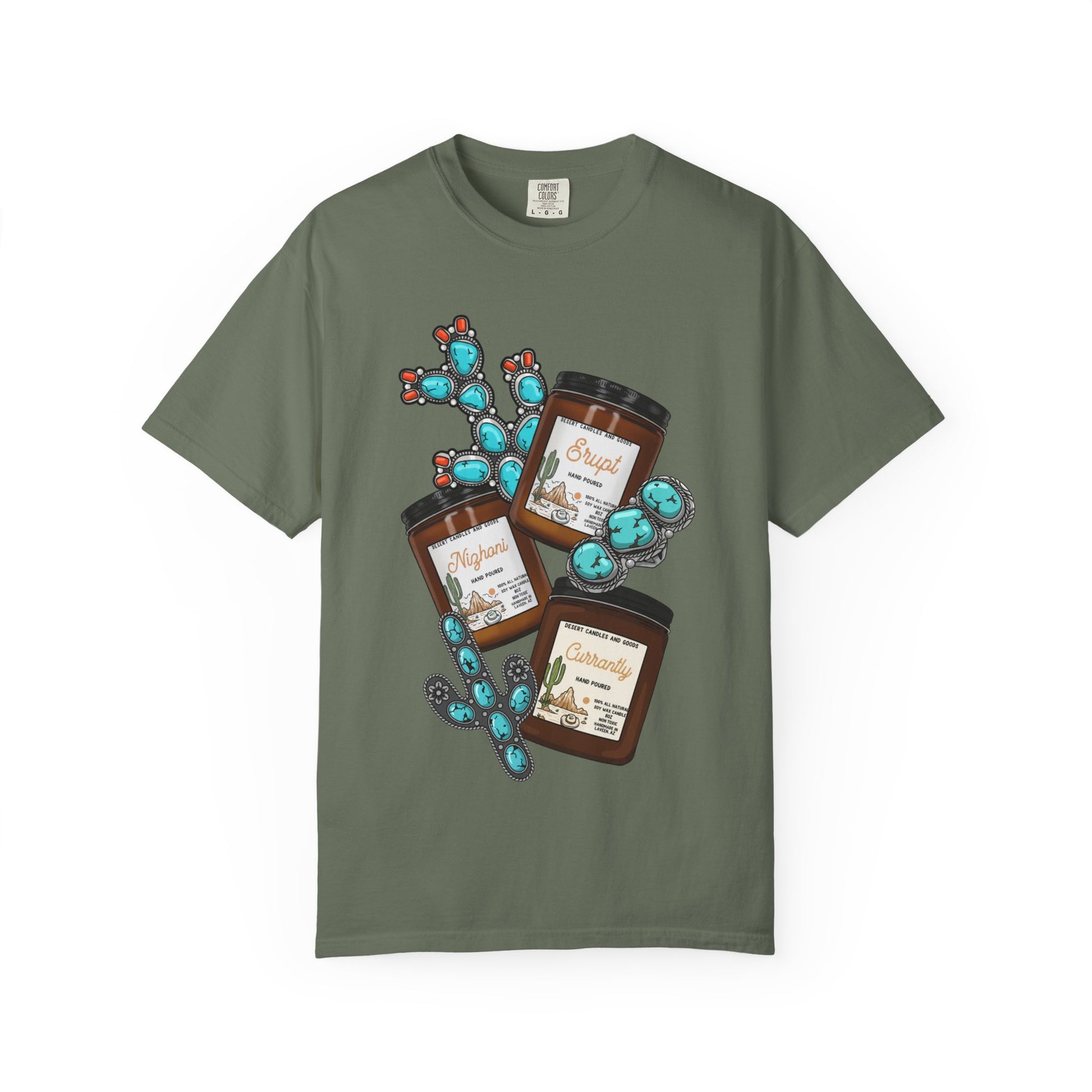 This candle turquoise T-shirt offers a relaxed fit and medium fabric weight, perfect for everyday wear. Made of 100% ring-spun US cotton, it provides long-lasting comfort. The garment-dyed fabric gives it a soft color and texture, making it a unique addition to your wardrobe. Ideal for those who appreciate comfortable and stylish clothing, this T-shirt is great for casual outings and can be worn on various occasions.